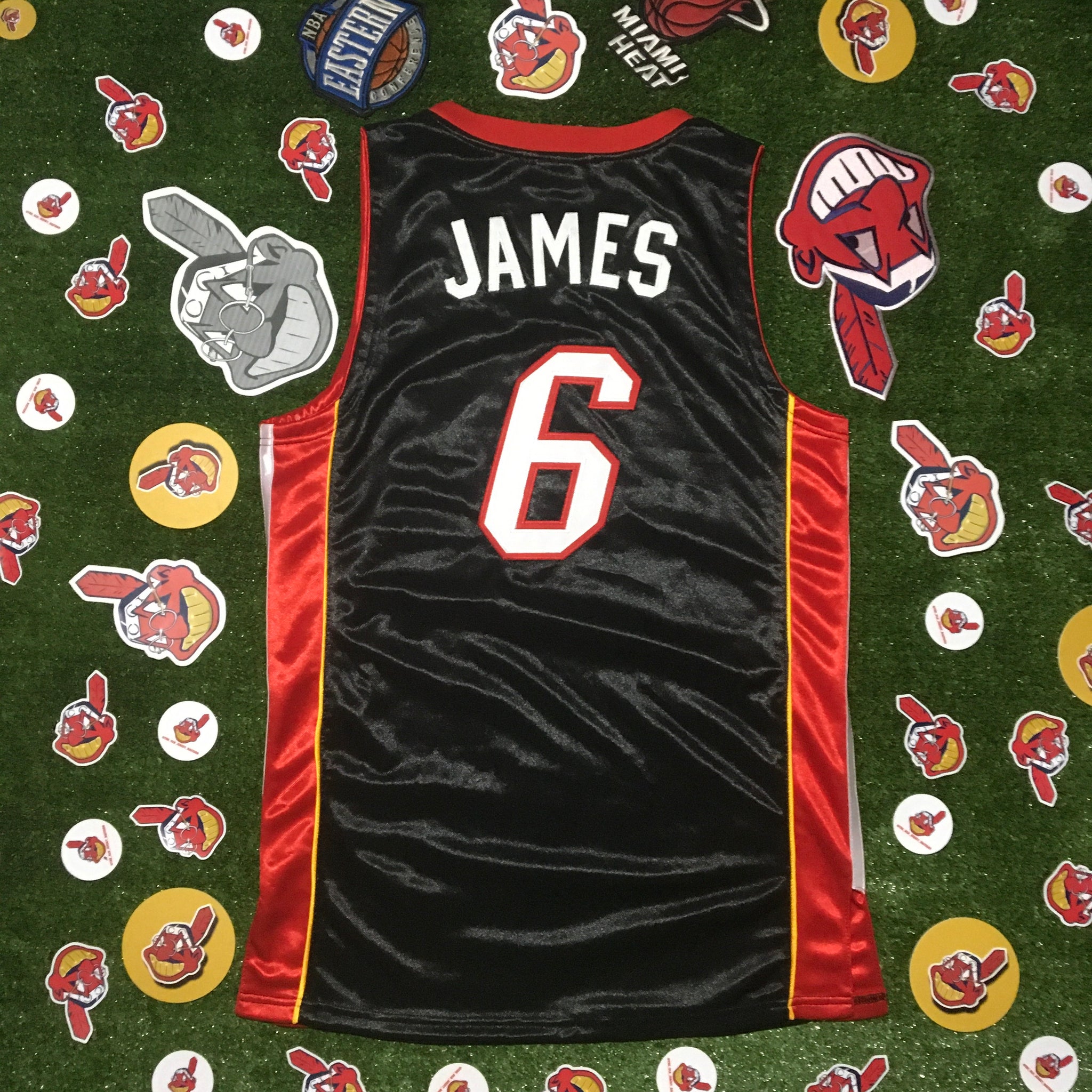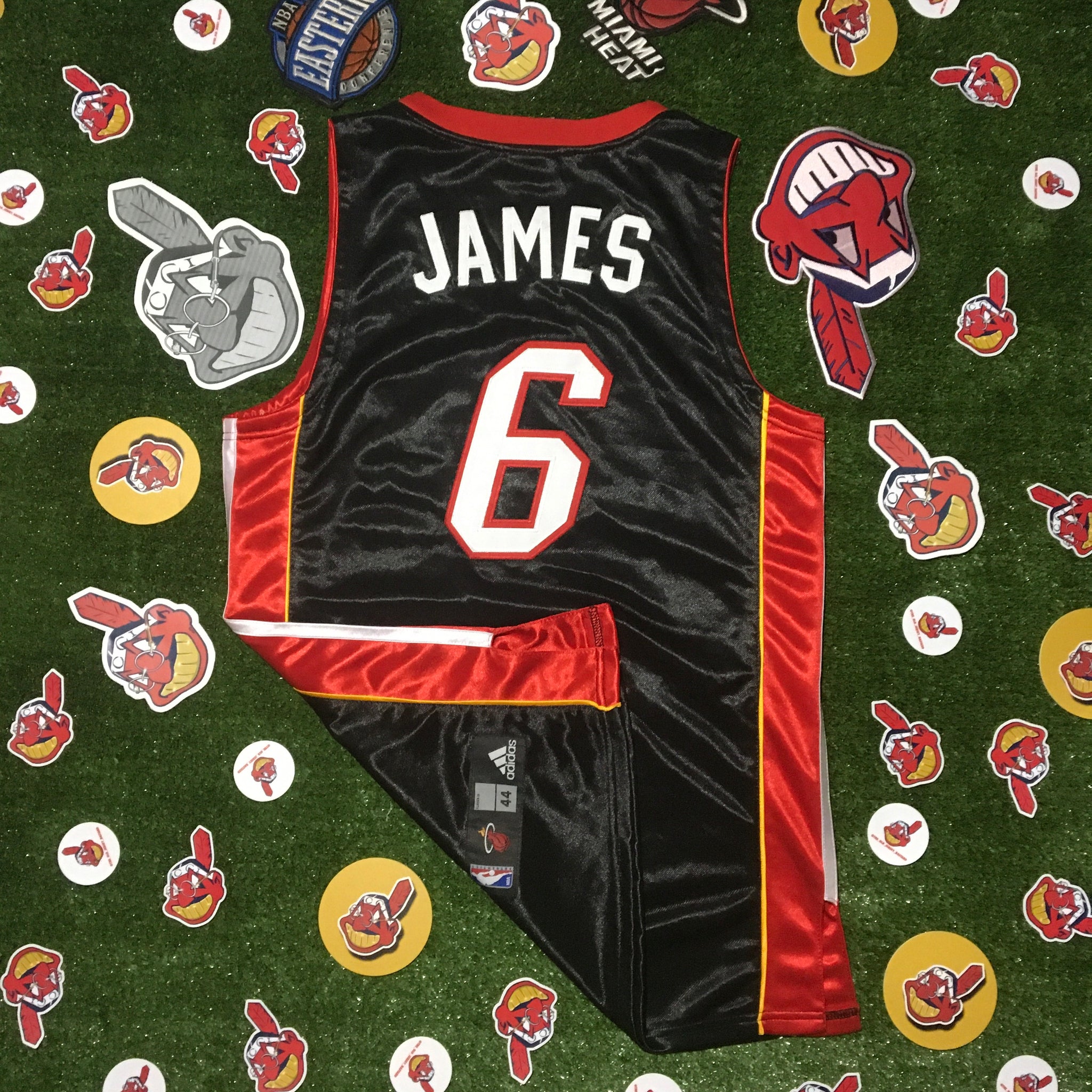 Adidas Authentic Miami Heat LeBron James #6 Sewn Jersey Size 44 Black/Red. Condition is Used. Shipped with USPS First Class Package